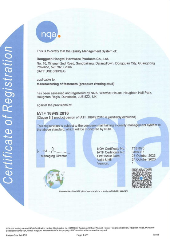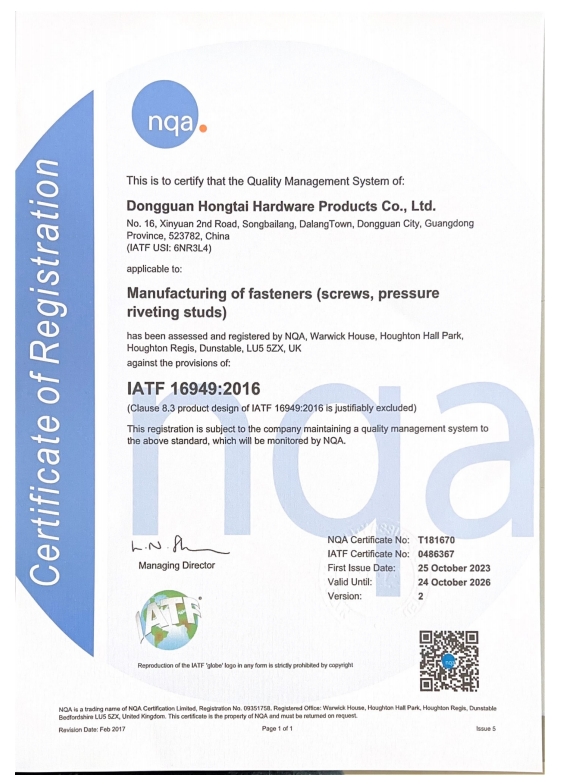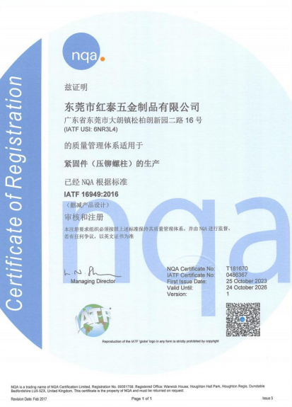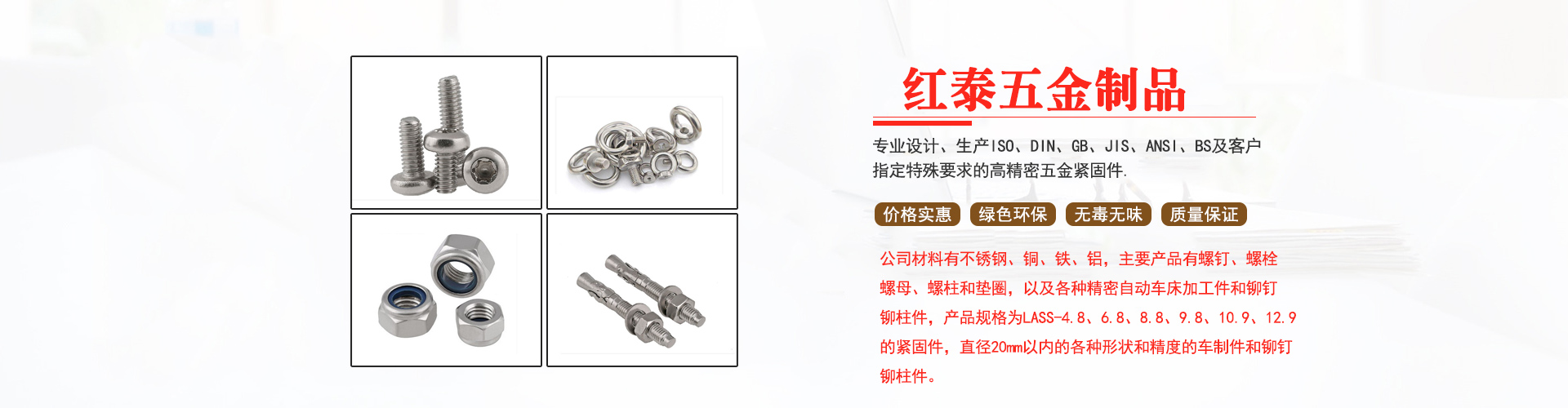 東莞市紅泰五金制品有限公司,公司占地六千多平方米,擁有五十多組螺絲機及六十臺自動車床設備。是一家專業(yè)設計、生產(chǎn)ISO、DIN、GB、JIS、ANSI、BS及客戶指定特殊要求的高精密五金緊固件的制造企業(yè)。